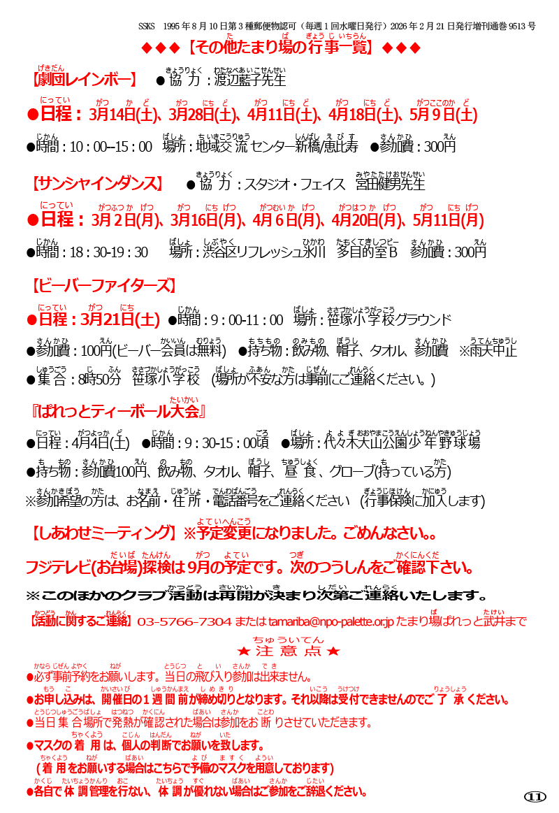 ・たまり場ぱれっと今後の予定