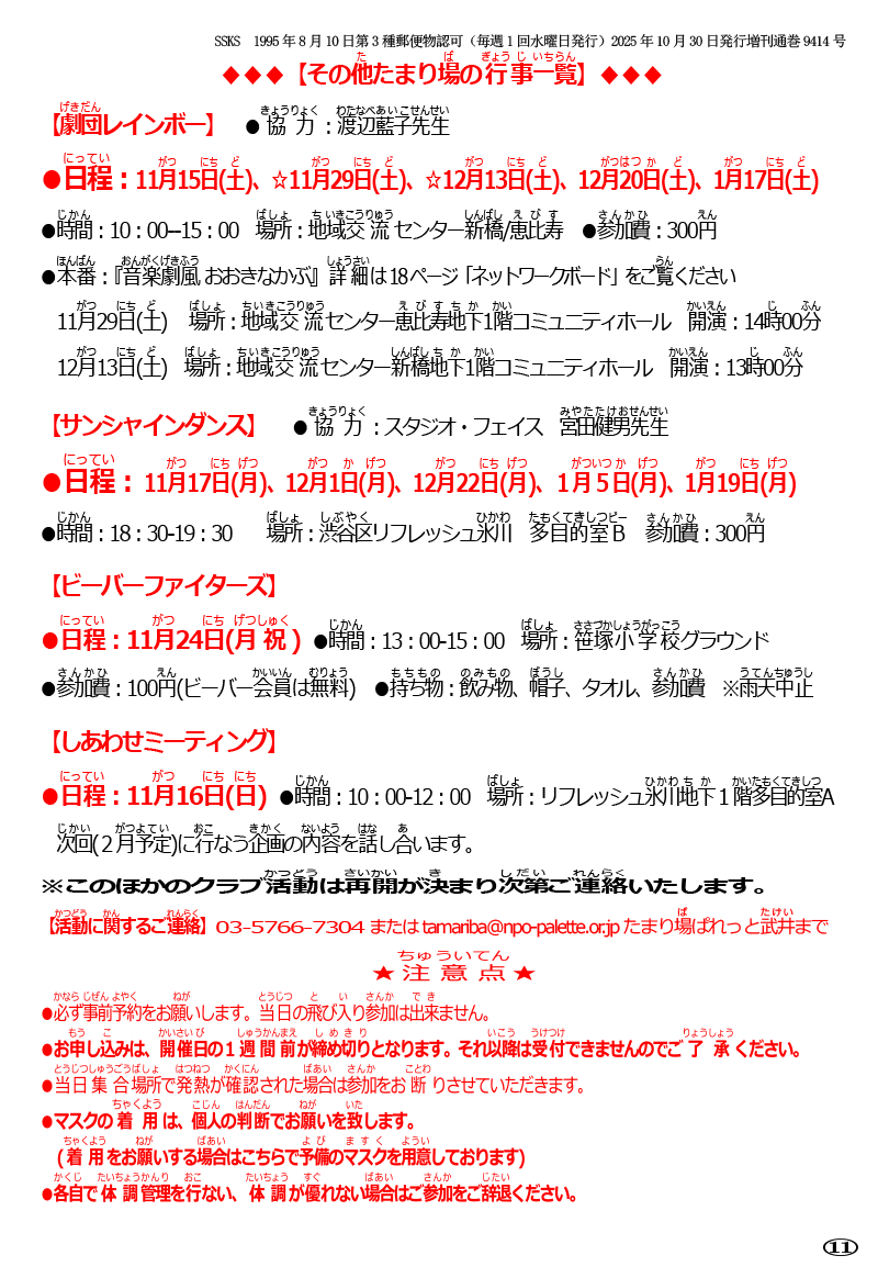 ・たまり場ぱれっと今後の予定 ・その他たまり場の行事一覧 「Let's Go」過去の一覧 2025年 2024年 2023年 2022年 2021年 2020年 2019年 2018年 2017年 2016年 2015年 2014年 2013年 2012年 2011年 2010年 2009年 2008年 2007年 2006年 2005年 各種資料 会員ログイン 入会お申し込み 見学お申し込み 講演会について 年次報告書